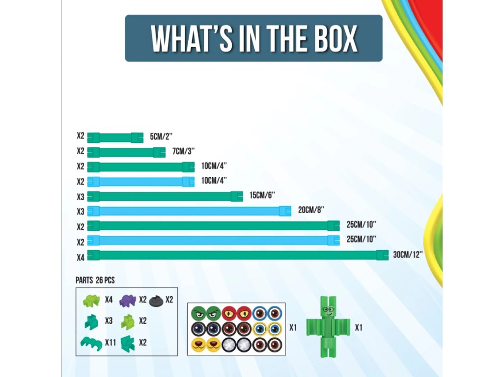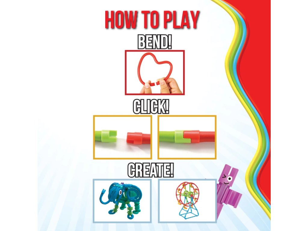 Kreatívna a flexibilná stavebnica pre deti Spaghetteez 48 ks od belgickej značky Clics Toys prináša neobmedzené možnosti tvorby a umožňuje deťom vytvoriť najrôznejšie 2D aj 3D figúrky. Balenie obsahuje rôzne dĺžky farebných a flexibilných dielikov, ktoré pripomínajú špagety, spolu s ďalšími konštrukčnými prvkami a návodom na tvorbu úžasných modelov. Vďaka špeciálnemu zaklikávaciemu systému na koncoch sa dieliky ľahko spoja – stačí ich spojiť, otočiť a môžete ich začať ohýbať a modelovať.