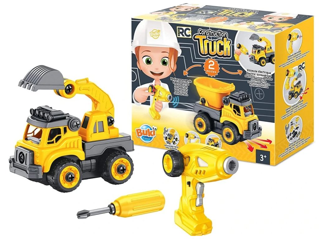 Stavebnica stavebných strojov (2 varianty: bager a nákladné auto) na diaľkové ovládanie, ktoré si dieťa zostaví samo. Súčasťou je elektrický skrutkovač slúžiaci aj ako diaľkové ovládanie. Autíčko môže jazdiť vpred, vzad, vľavo a vpravo.