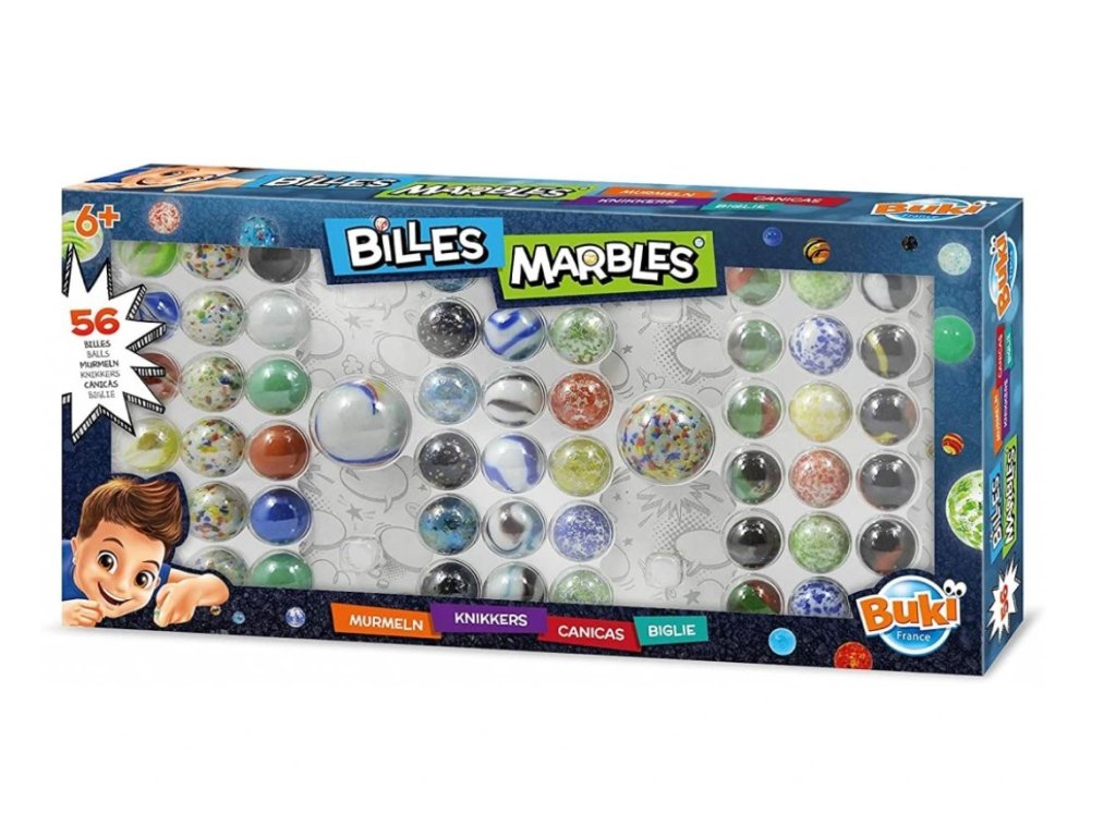 Sada 56 sklenených guličiek rôznych veľkostí a vzhľadu. Ich vzhľad je to čo robí rozdiel medzi touto sadou a ostatnými bežnými guličkami na trhu. V sade sú napr. dúhovky, perleťovky, žíhané, bodkované, mramorové, plnofarebné, metalické a dokonca aj fosforeskujúce guľôčky v tme.