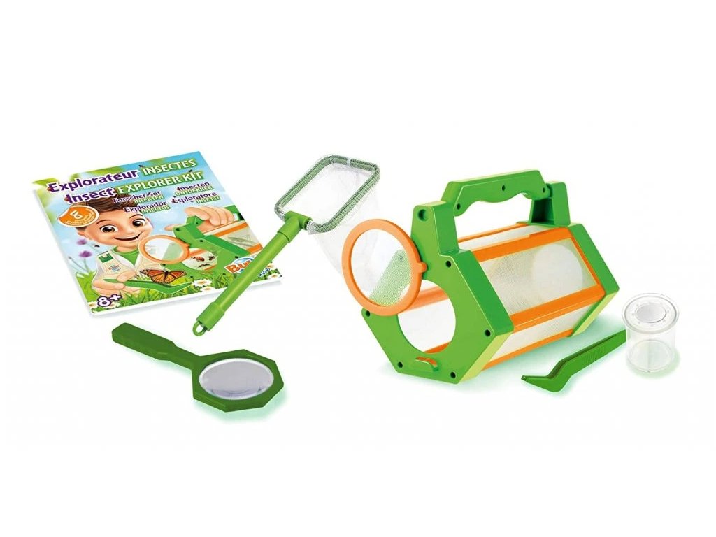 Detská sada pre chytanie a pozorovanie hmyzu. Pomocou sieťky, pinzety a priehľadnej misky opatrne nazbierajte hmyz a vložte ho do prenosnej krabice. Prenosná pozorovateľňa slúži len na dočasné pozorovanie, hmyz je potrebné po ukončení pozorovania vypustiť do prírody.