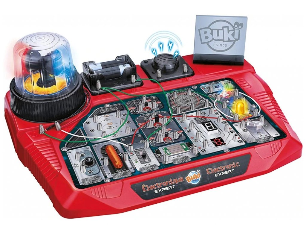 S touto elektronickou súpravou vytvoríš 50 rôznych elektronických obvodov, ktoré ti poskytnú množstvo zábavy vo forme alarmov, zvukových a vizuálnych efektov, ale najmä ti umožnia porozumieť základom elektroniky. To všetko bez akéhokoľvek nebezpečenstva.