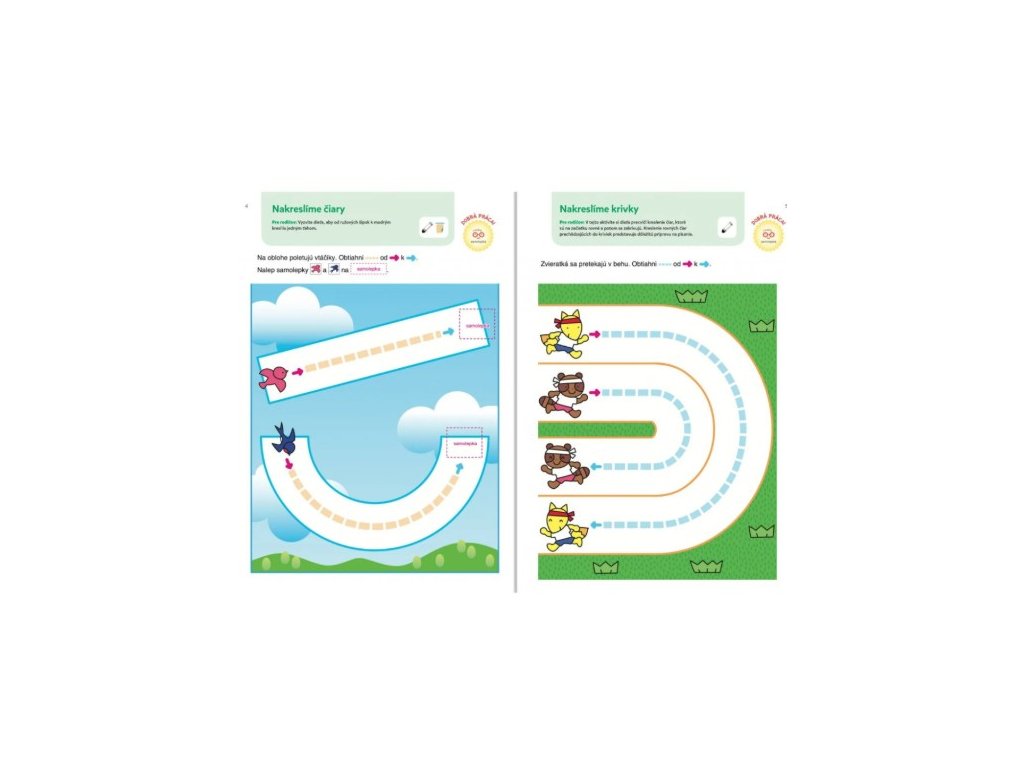 Kladie základy zručností pre budúce písanie. Je určený deťom od dvoch rokov, ktoré sa ešte len začínajú učiť. Kniha svojím vyhotovením zodpovedá vývojovej fáze dieťaťa, zraku aj veľkosti jeho ruky. Kniha obsahuje viac ako 80 farebných samolepiek. Niektoré dieťa použije v rámci úloh, ostatné slúžia ako samolepky za odmenu. Zošit sa začína jednoduchšími aktivitami. Pri postupe zošitom predstavujú aktivity, ako bludiská, obťahovanie, hľadanie rovnakých dvojíc a pod. čoraz väčšie výzvy.