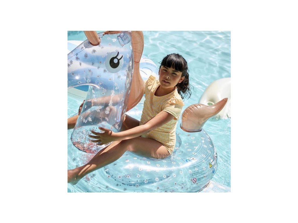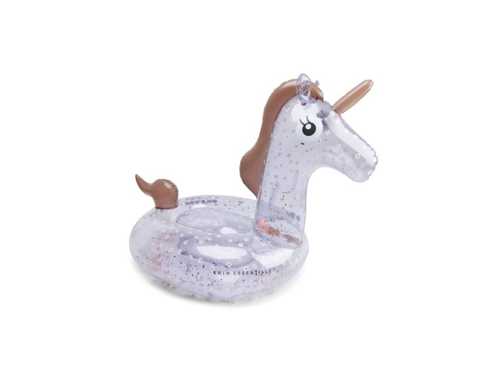 Obrovský priehľadný nafukovací jednorožec s trblietkavými sedmokráskami od Swim Essentials sa bude krásne vynímať v bazéne aj na mori. Je určený deťom od 6 rokov, maximálna nosnosť je 80 kg, takže ho pokojne využijú aj teenageri či dospelí na zábavu aj leňošenie. Slúži ako multifunkčný doplnok do vody.