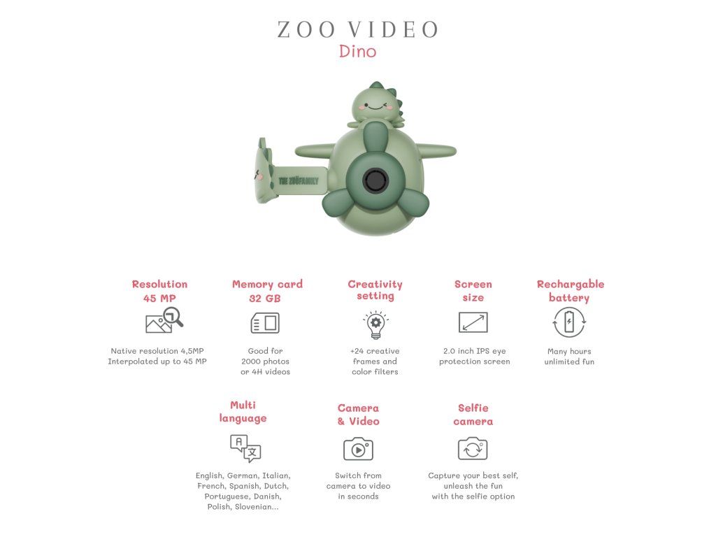 The Zoofamily Video detská digitálna kamera dino