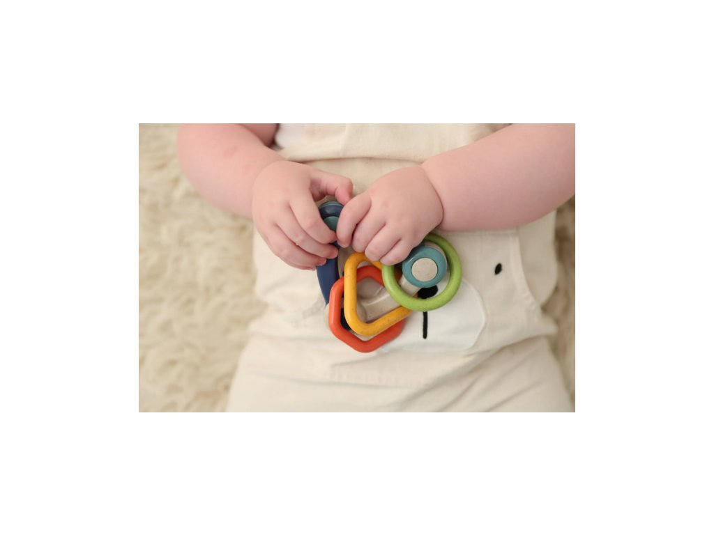 Hračka je ľahká a jednoducho ju dieťatko uchopí do malých rúk. Je vyrobená z odolného materiálu bezpečného pre bábätká, z bio plastu z pšenice.