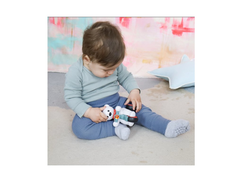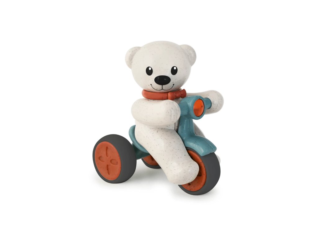 Tolo Medvedík na trojkolke stimuluje koordináciu rúk a očí a podporuje hrubú motoriku detí. Stláčaním hlavičky a sledovaním pohybu medvedíka sa deti učia o princípe príčiny a následku. Hračka je vyrobená z kompostovateľného BIO plastu z pšenice, bezpečného pre najmenšie detičky.