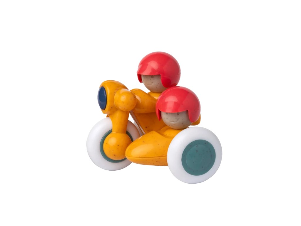 Tolo Motorka Sidecar je farebná a veselá hračka, ktorá sa jednoducho ovláda. Kolesá aj hlavy jazdcov sa dajú otáčať, čo trénuje zručnosť dieťatka a rozvíja motoriku. Hračka je vyrobená z materiálu bezpečného na vkladanie do úst pri prerezávaní zúbkov.