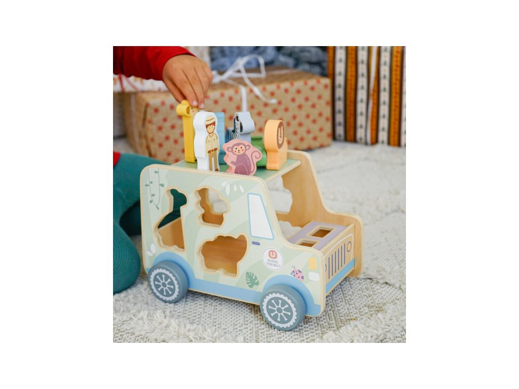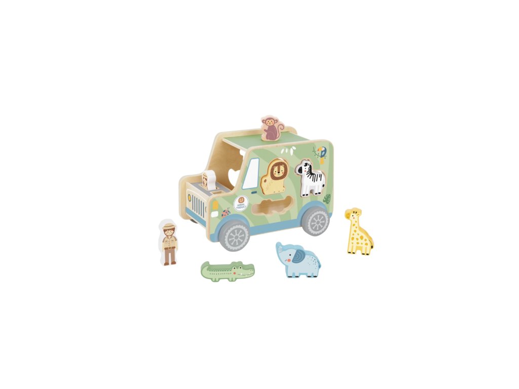Drevená vkladačka v podobe safari jeepu v pastelových farbách od Tooky Toy zabaví vaše deti na veľmi dlho. Auto je totiž veľké, krásne jazdí, má 6 otvorov na vloženie 6 drevených zvieratiek a taktiež 2 figúrky v podobe bádateľov, ktorí majú svoje miesta v prednej časti auta. Deti sa tak môžu hrať s autíčkom aj s figúrkami na safari a ešte si pritom zlepšovať svoje zručnosti vďaka vkladaniu.