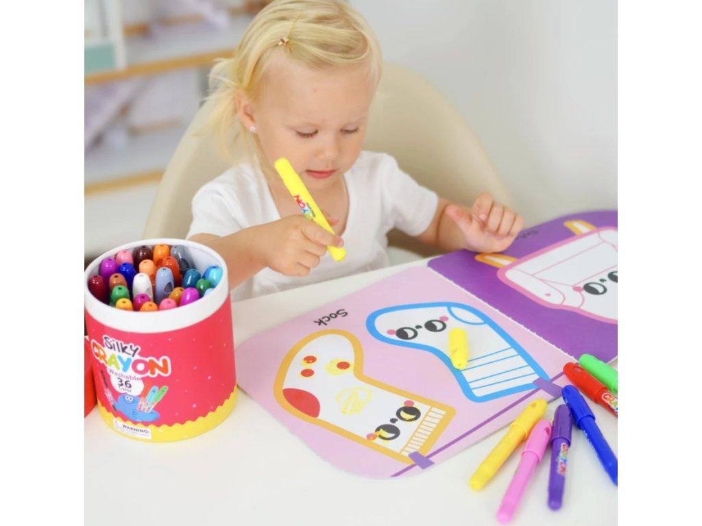 Rozžiarte svet svojho dieťatka farbami! Naše jemné umývateľné voskovky v praktickom balení 24 kusov prinesú nekonečné možnosti kreatívneho vyžitia – na papieri, ale aj na tvári či tele. Bez tlačenia, bez špiny, iba čistá radosť z tvorenia!