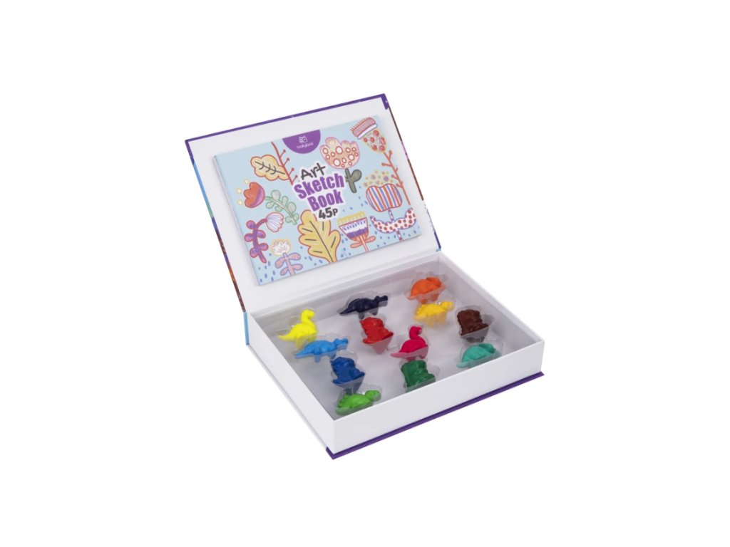 Kreatívna sada 2 v 1 Dinosaurus od Tookyland je určená pre najmenších umelcov, ktorí sa ešte len zoznamujú s tvorením. V pevnom uzatvárateľnom boxe deti nájdu 12 nádherne farebných voskoviek v podobe roztomilých dinosaurov a 1 kreatívny zošit so 45 listov plný omaľovánok aj prázdnych papierov na kreslenie. Vďaka krásnemu baleniu je táto kreatívna sada vhodná pre najmenších ako darček k narodeninám, Vianociam či sviatku.