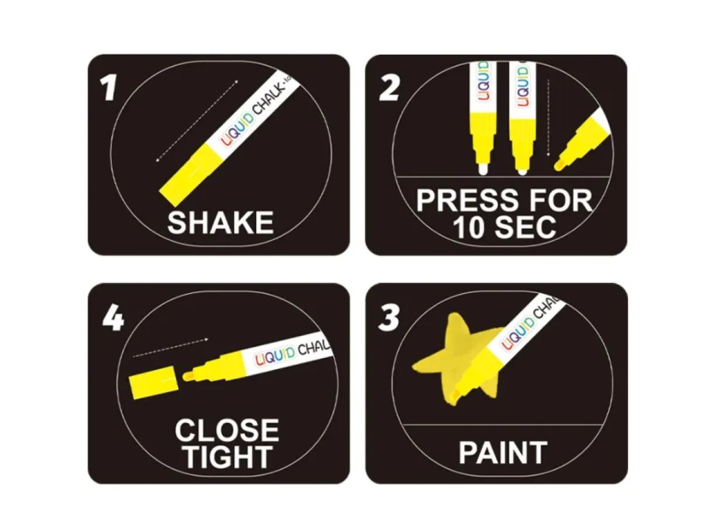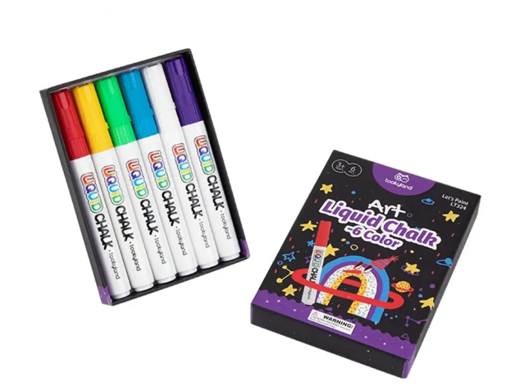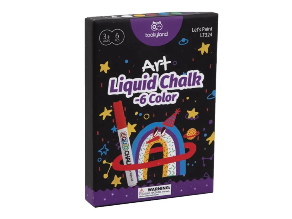 Balenie obsahuje 6 kriedových fixiek, ktoré deťom úplne postačia, aby sa mohli umelecky vyjadriť. Tekutá krieda od Tookyland nie je toxická a pre vaše deti úplne bezpečná. Kresliť s nimi môžu pokojne už deti od 2 rokov.