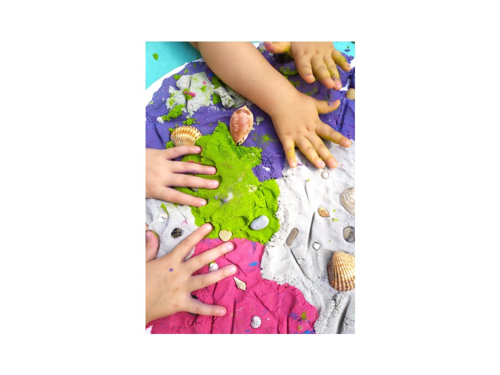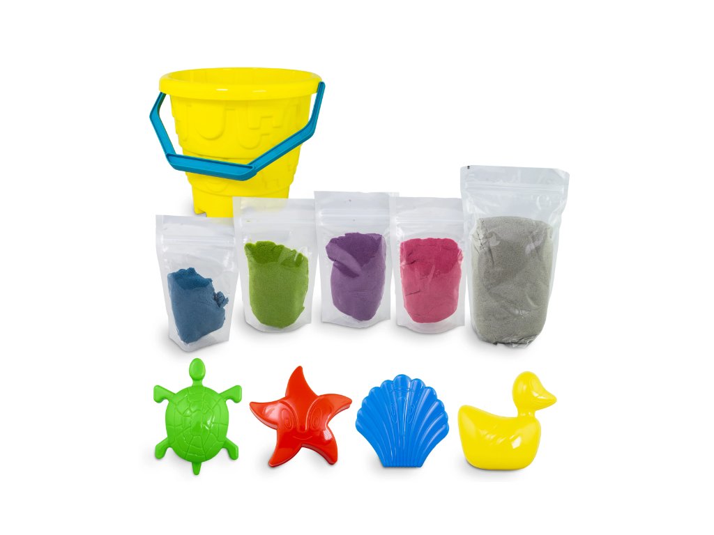 - 4 x 200 g piesku (ružový, modrý, zelený, fialový),