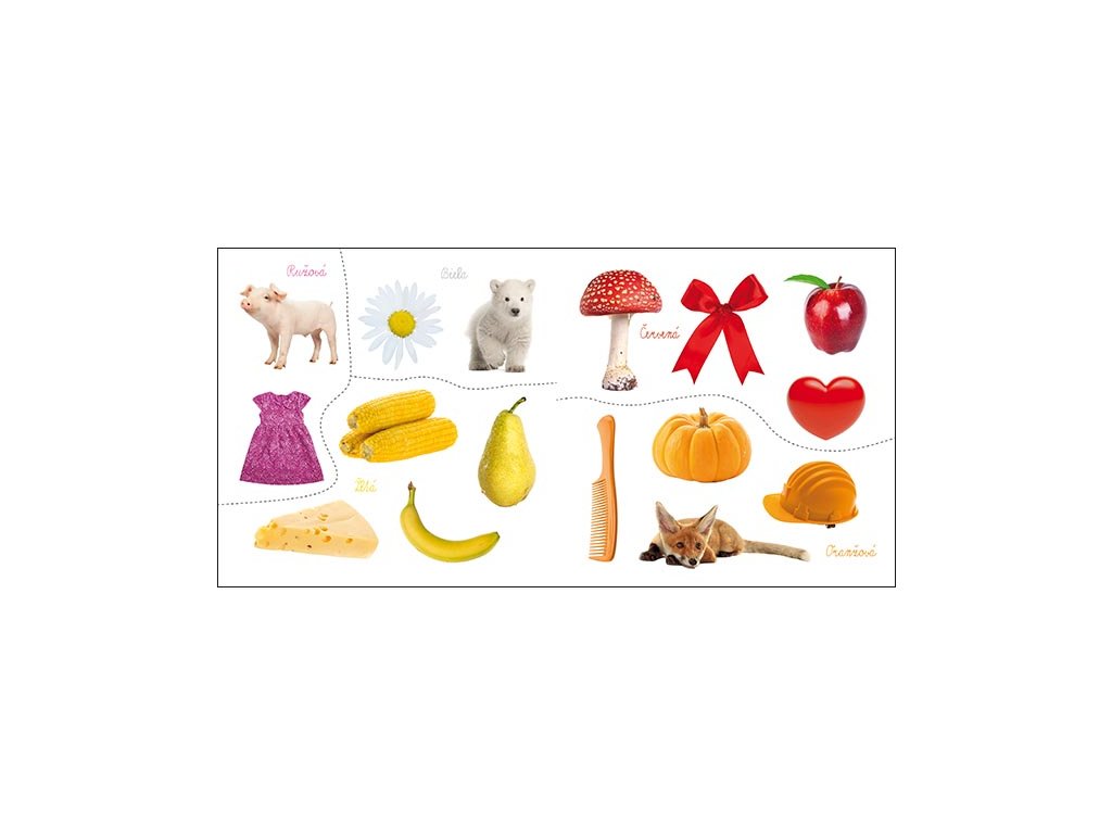 Náučná samolepková knižka pre najmenšie deti obsahuje 16 strán plných obrázkov a prvých slov a 4 listy samolepiek na dolepenie na správne miesto.