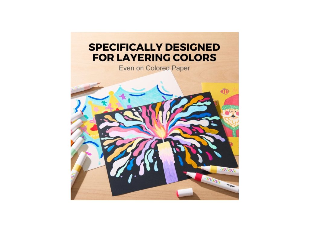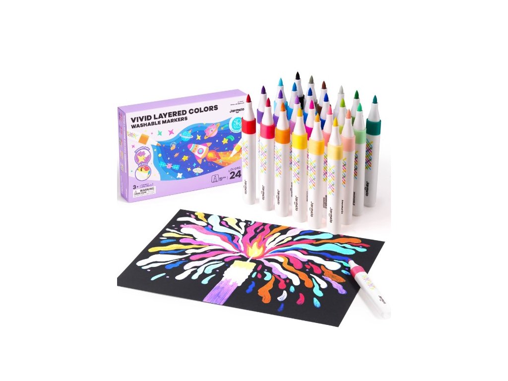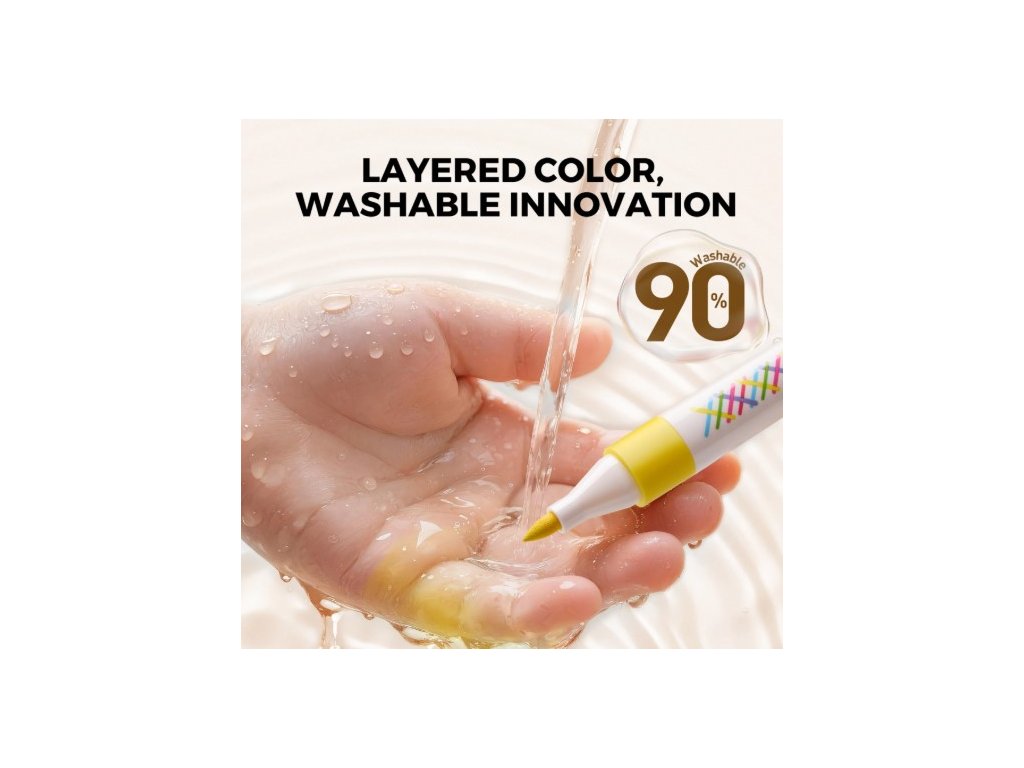Spoznajte čaro kreslenia vo vrstvách! Vivid Layered Fixky od Jarmelo sú jedinečné umývateľné fixky, ktoré deťom umožnia miešať farby priamo na papieri – bez vody a bez neporiadku. Vďaka tomu deti zažijú skutočnú radosť z tvorby a naučia sa experimentovať s farbami ako malí umelci.