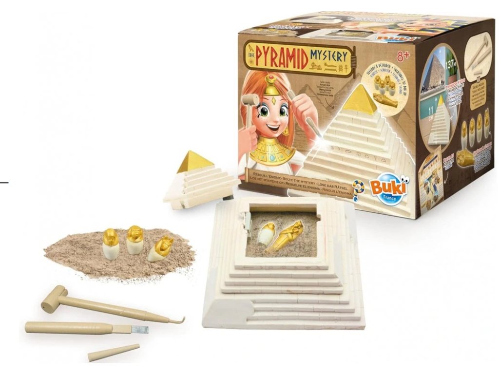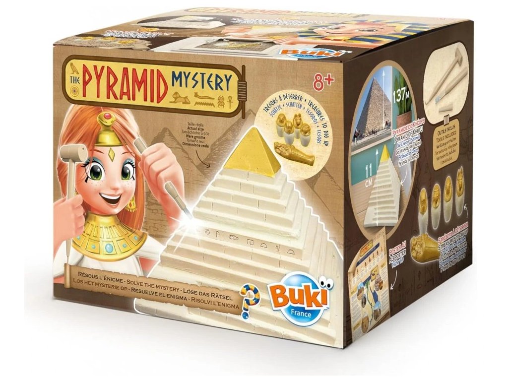 Predstavujeme súpravu BUKI - Záhady pyramíd – váš kľúč k odhaleniu tajomstiev dávnych pyramíd! Táto komplexná sada ponúka jedinečnú možnosť pre malých dobrodruhov objaviť tajomstvá skryté v hĺbkach pyramíd.