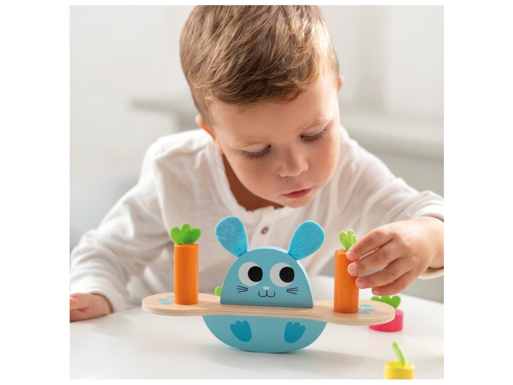 Podarí sa deťom umiestniť všetku zeleninu tak, aby bol zajko stále v rovnovážnej polohe?
