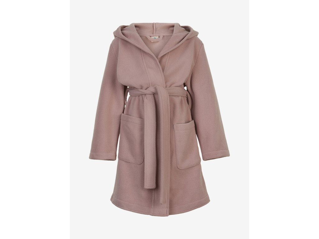 Župan od En Fant z mäkkého jednofarebného flísu. Župan má veľké vrecká vpredu, opasok na uviazanie okolo pása a kapucňu. Certifikovaný podľa GRS CERES-0366.
